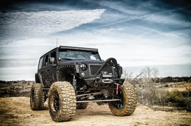 Up next Karl Probst: The Father of the Jeep Published on January 04, 2024 Author John Mata Jr. Tags bulletproof suspension, custom Jeep, FULL METAL JACKET, STARWOOD MOTOR’S JEEP, Share article Facebook 0 Twitter 0 Mail 0 Full Metal Jacket: Starwood Motors’ Jeep Wrangler Have you ever wondered what it would be like to completely dismantle your Jeep and build it back up just the way you wanted? You may or may not have seen the many custom Jeep conversions that Starwood Motors have created in the past, but this this one in particular stands out as it has been touted to be the toughest, roughest unit out on the market today. Full Metal Jacket is the name that has been given to the ’13 Jeep Wrangler that Starwood has crafted out of a basic skeleton once they were done stripping it down. Where’d they come up with the Jeep’s title? Well, a lot of it has to do with the bulletproof suspension setup that was developed for the Wrangler. Full metal jacket is touted to be the toughest, roughest unit out on the market today. The purpose-built front end features a winch, light bar, and stinger bar. Taking Matters Into Your Own Hands If you’ve shared that dream of tearing your own rig down to the metaphorical studs, you probably already know how big of a commitment it really is. Replacing the bumpers and wheels are one thing, but what about a full-blown, legitimate tear down? Some guys dream of having the bravery (or balls) to do such a thing, but when it comes right down to it, ripping a perfectly good vehicle down to the ground can be quite intimidating —something that most owners just aren’t ready for. Even if you did work up the nerve to gut the interior, the entire suspension system, and the majority of the body panels, how long would it really take to rebuild it better and badder than before? The process could take years, and the headaches associated with the job are sure to be incalculable. Subscribe to our weekly newsletter Okay, that introduction wasn’t meant to deter any potentially brave soul from attempting to customize his own jeep, but the reality of the situation had to be addressed. There are professionals, however, who do this kind of work day-in and day-out with impeccable skill and talent. One of these crews is Starwood Motors out of Dallas, Texas. Customization is their business, and it just so happens that complete vehicle teardown is their specialty. Actually, what they have built their reputation on is their solid rebuilds. “Solid” doesn’t even begin to describe their work as a whole, but for the purposes of this story, it’s a start. Let’s dive in and take a closer look. Bad to the Bone The guys threw in 1-ton Currie Rock Jock Dana 60 axles underneath the Jeep, which builds both ruggedness on the trail and confidence about never having to worry about busted outers or axle shafts. The frame itself features an insane long arm suspension and 14-inch Fox coil over shocks that can extend from 9 inches to pretty much whatever is necessary to conquer any mountain. And to help get it over the top of that tower of rocks and dirt, 40-inch Nitto Mud Grapplers and a 5.38:1 gear ratio will have this thing propelling in any direction of choice. The mark of a good build blends craftsmanship, functionality, and durability. Designing a suspension like this one right here is not exactly what most would expect out of a home DIY project, which may be yet another reason to leave a project of this caliber to fabrication veterans. The guys threw in 1-ton Currie Rock Jock Dana 60 axles underneath the Jeep, which builds both ruggedness on the trail and confidence about never having to worry about busted outers or axle shafts. But aside from its mini-tank-like agility, the Full Metal Jacket Wrangler has been clad with a serious exoskeleton that only Starwood Motors has seemed to master. Their signature paint finish is infused with DuPont Kevlar pulp, which makes the surface impenetrable to the elements, and would allow the Jeep to be showered with the most acidic of acid rain or the stormiest of weather without causing as much as a water stain. This is the same material that is used in ballistic applications and stab-resistant body armor—it’s some pretty serious business for sure, and fits right into place on this 4-wheeled warrior. Smittybilt 1/8-inch cold rolled steel XRC Body Armor skins have been brought in to keep the bodylines tight and contoured while adding a level of protection that will keep this rig safe from whatever it stands toe-to-toe with on the back roads. 22-inch KMC XD series Bomb off-road wheels have similar aggressive styling cues as the rest of the Jeep, so they were brought in to round off the entire exterior package. Carefully-selected suspension and tires give the Full Metal Jacket an aggressive stance. Rigid Industries light bars have been mounted to make sure that even after night falls, there’s enough light to keep the action moving. With all the talk about doomsday prepping the last few years, what better vehicle could ever deliver better post-apocalyptic performance? If the undead really do become a factor during these times, none will have a chance catching up with or taking down the Full Metal Jacket Wrangler’s arsenal. Locked and Loaded Oh, so you want to know about this Wrangler’s mowing capabilities? Well, the impressively rambunctious Pentastar 3.6L V-6 serves as this Jeep’s power plant as it boasts a horsepower count of 285 and enough torque to make it quicker at acceleration and steady on the grind after it takes off. The confines of the control center aren’t any less impressive as Starwood has outfitted this model with full custom seats covered in black leather and Alcantara Daytona style inserts and Kevlar floor lining (because messes of all kinds are definitely in this machine’s foreseeable future). A Kenwood touchscreen navigation/DVD player equipped with iPod and USB integration, as well as a satellite radio meet all the