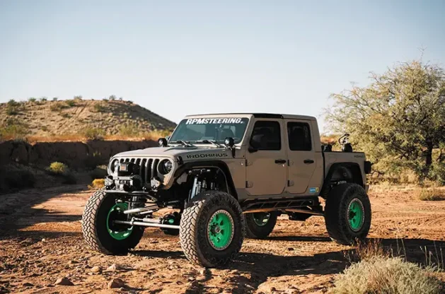 Up next From YJ to TJ: The Evolution of the Jeep Wrangler Published on August 26, 2024 Author MIKE SELF Photo Credit Braxton Klavis Tags 2020 Jeep Gladiator, Share article Facebook 0 Twitter 0 Mail 0 Indominus Unleashed: Unstoppable Jeep Gladiator Build A Jeep of Jurassic Proportions Jeeps and dinosaurs go together like peas and very aggressive carrots. In fact, Jeep recently released a limited edition Jurassic Park appearance package through its Jeep Graphic Studio program for those who want to feel like they may get physically assaulted by a giant lizard at any moment. Or maybe they just want their Jeep to look like the ones in the movies. Subscribe to our weekly newsletter And really, the connection makes sense outside of the world of movies, too. Jeeps are tough, adaptive to their environments, and the battle-scarred remains of both can be found scattered throughout the hills of Utah. Enter one 2020 Gladiator named “Indominus.” If you guessed that that’s the name of a dinosaur, you’d be right. Furthermore, it’s one of the main antagonists in “Jurassic World,” although there’s one major difference between the Jeep, owned by Matthew Heyer, and the lab-designed Indominus Rex—the Jeep is very much real, and potentially better suited at survival. ” “Matthew’s Jeep got the nod to receive RPM Steering & Suspension’s very first 3-link front/4-link rear triangulated suspension lift kit for the Jeep JT, which was an immediate and vast improvement over the factory setup.” Indomitable Jeep Matthew is no stranger to building Jeeps, and as thoroughly sorted and diverse as the aftermarket has become with parts and accessories, he found much of what he needed off the shelves of various manufacturers. But, he was also able to infuse some of his own ideas to create a unique build with some one-off features. Much like an artist painting on a blank canvas, the first stroke is often the most difficult to make, and it was no different for Matthew. For instance, how far would the build go? It’s a crucial decision that pretty much steers the direction of a complete rig build, but in this case he wouldn’t find that out until he got knee-deep and identified the Gladiator’s weak points, and then improved upon them as needed. That being said, he still planned to go big. In fact, Matthew’s Jeep got the nod to receive RPM Steering & Suspension’s very first 3-link front/4-link rear triangulated suspension lift kit for the Jeep JT, which was an immediate and vast improvement over the factory setup. The front received two sets of Bilsteins—a pair of 12-inch M 9200 bypass units and a pair of 12-inch M 9200 coilovers—while the rear got 14-inch M 9200 coilovers. The 4.5-inch total lift gives enough clearance for the 42-inch Nitto Trail Grappler M/T tires, which swallow up the 20×10 Raceline Avenger beadlock wheels. Way Beyond ‘Basic’ At this point, it was clear that Matthew’s Jeep was evolving way past the point of “basic,” but with the ball already rolling and picking up speed, he went with it and succumbed to more upgrades—lots more upgrades! And these would be modifications that would leave no doubt as to Matthew’s intentions to hit the toughest trails in his home state of Utah. “… clearance is no issue for this formerly ass-heavy Gladiator!” The bed-mounted RPM 26-gallon fuel cell provides a ton of extra room underneath the bed, while an RPM kingpin steering setup with PSC hydro assist beef up the steering up front. As you can imagine, those big-boy 42s added some space between the framerails and the ground but also reduced available space between the body. But now, with the combination of front Krashfab bumper, GenRight rear bumper, Nemesis Industries Ultimate Clearance fenders, and a full foot taken out of the freshly bobbed bed, clearance is no issue for this formerly ass-heavy Gladiator! With all of this serious hardware now on Matthew’s Jeep, it’d be silly to keep the stock axles, and no one wants silly axles, so they got chucked in favor of Fusion Pro Series fabricated 10-inch axle assemblies front and rear, stuffed with 5.43 gears, ARB Competition lockers, and 13.25-inch Fusion big brake kits. Rig complete (for now) and ready to rock, Matthew’s been everywhere from Jeep Jamboree to King of Hammers with his JT, but he still has some additional changes planned for it. Definitely a custom roll cage, and possibly even an LS or Hemi swap to replace the stock 3.6L V-6! And with his wife Julie right alongside him in her own Jeep (check it out elsewhere in this issue), you can bet that there’s plenty more fun to be had in this Jeep before Matthew considers it extinct and moves on to his next project! UPGRADES 2020 Jeep Gladiator OWNER: Matthew Heyer Saint George, UT Chassis & Suspension: MWork by RPM Steering & Suspension and Morgan’s Metal Worx Shortened rear frame for bobbed bed Front of frame sectioned for bumper RPM Steering & Suspension skid plates RPM Steering & Suspension 4.5-inch lift RPM Steering & Suspension 3-link front RPM Steering & Suspension double triangulated 4-link rear Front 12-inch Bilstein M 9200 bypass shocks and coilovers w/Hyperco springs Rebel Offroad DSS (Dual Shock System) shock brackets Rear 14-inch Bilstein M 9200 coilovers w/Hyperco springs RPM Steering & Suspension rear coilover towers PSC Big Bore XD Gear steering box and PSC 8-inch ram 13.25-inch Fusion brakes front and rear RPM Steering & Suspension 26-gallon fuel cell mounted in bed Wheels & Tires: 20×10 Raceline Avenger Beadlock wheels 42×13.5R20 Nitto Grappler M/T tires Engine & Drivetrain: Stock 3.6L V-6 engine Stock 8-speed automatic transmission Rubicon transfer case with 4:1 ratio Fusion Pro Series Fabricated 10-inch axle housings front and rear 40-spline axles Gearworks high pinion front third member w/5.43 gears and ARB Competition locker Gearworks low pinion rear third member w/5.43 gears and ARB Competition locker Body & Paint: Krashfab front bumpe