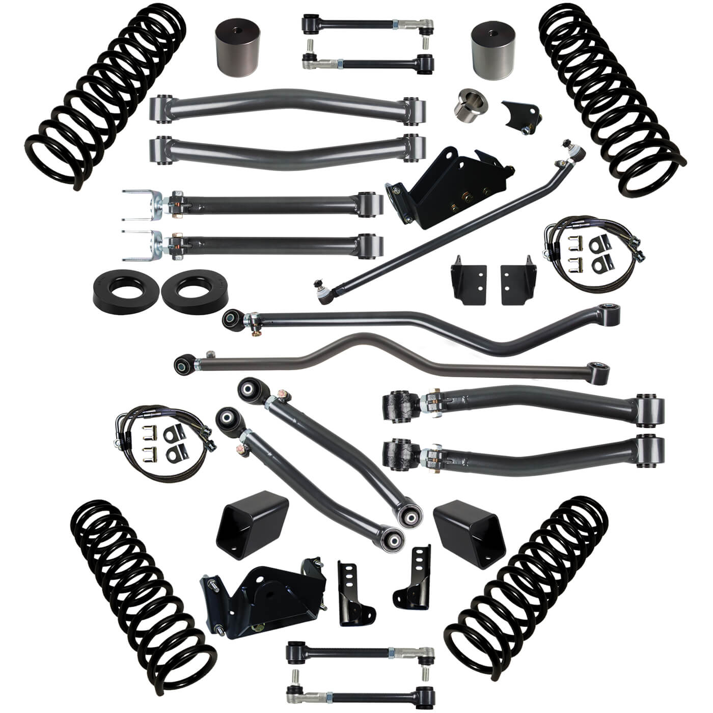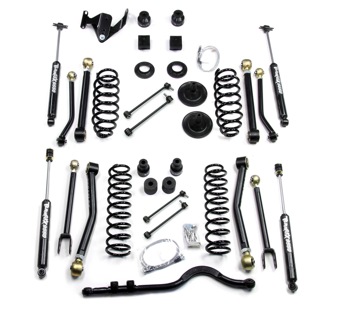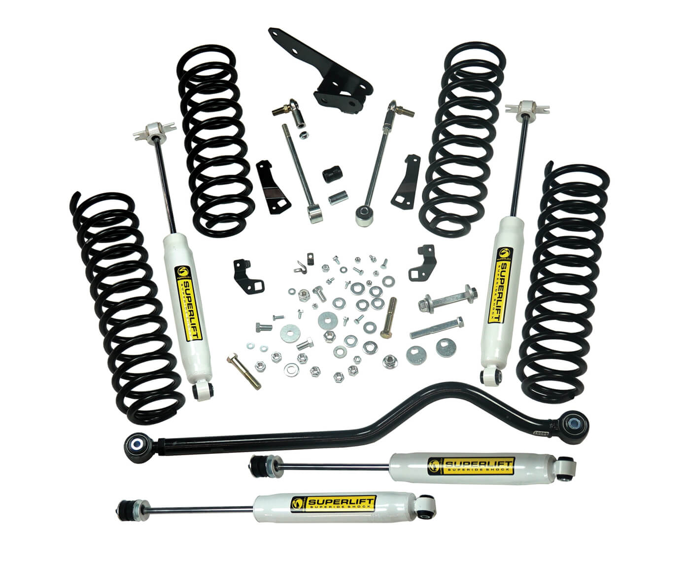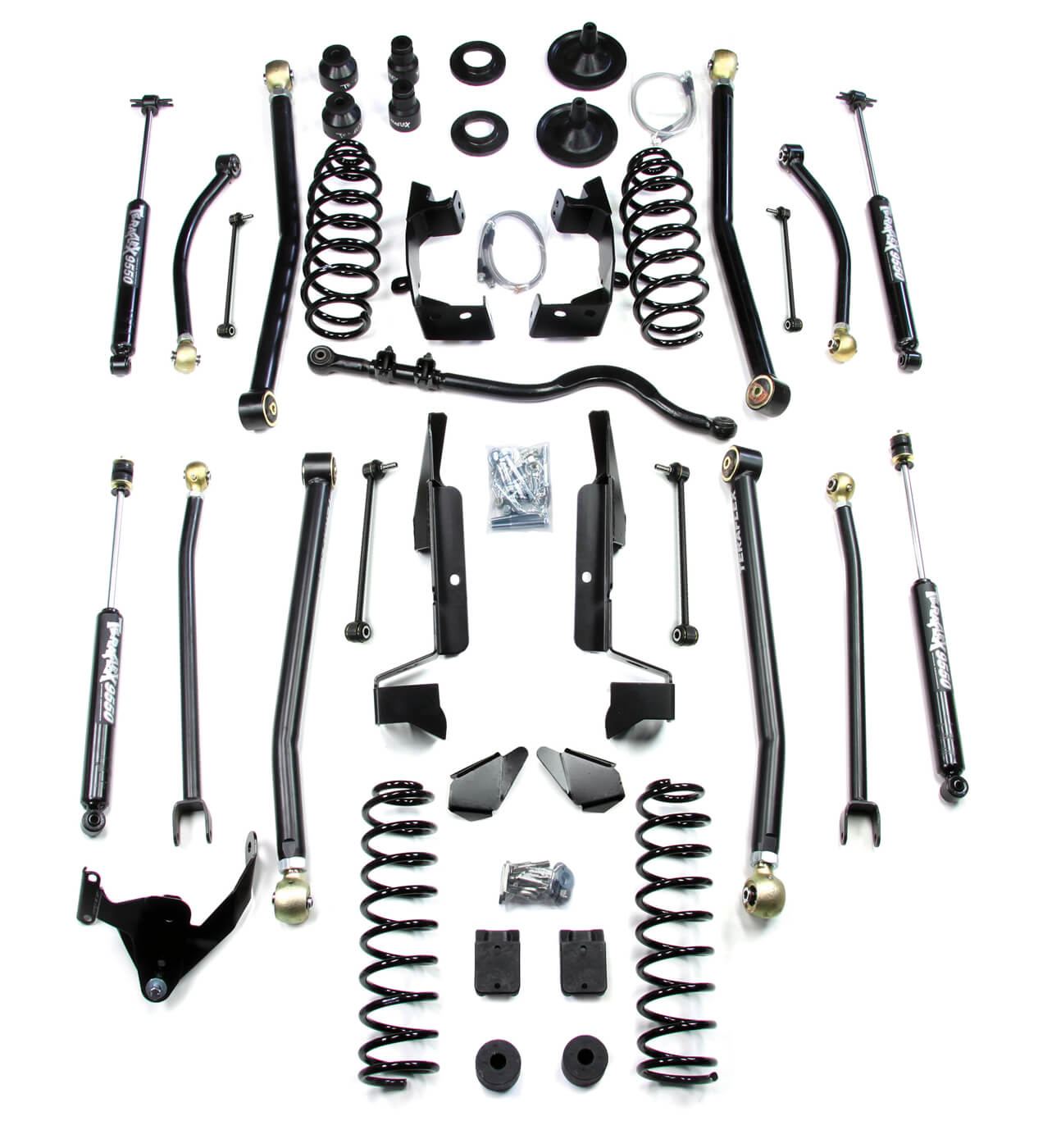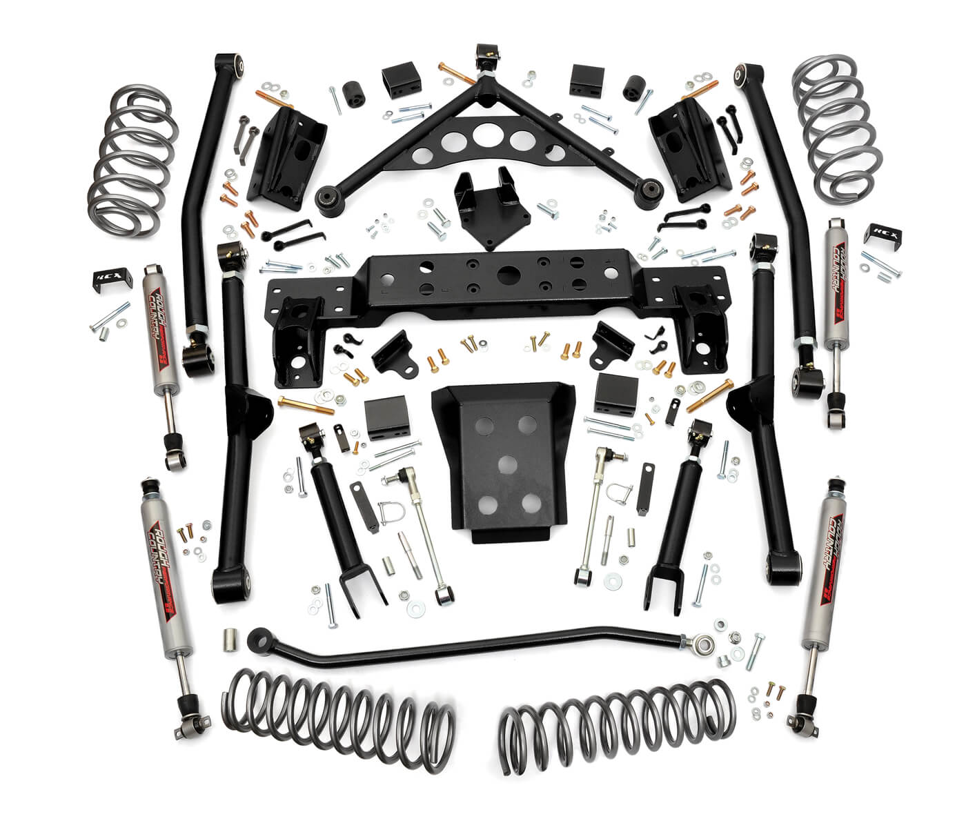 Up next 2016: OFF-ROAD WHEELS YOU NEED. Published on July 25, 2023 Author Tread Staff Tags jeep stance, Jeep Wrangler, lift kit, rough country, stance jeep, stance jeep wrangler, wj 8 inch lift, wj long arm kit, Share article Facebook 0 Twitter 0 Mail 0 Next Level: The Right Stance for JK, TJ, WJ and YJ Jeeps Suspension. More often than not, it’s the most important upgrade when modifying any vehicle, particularly when building one for off-road use. Without a proper lift, many trails become unnecessarily hazardous, as difficult terrain can easily damage your vehicle’s undersides when riding at factory height. Also, without the proper lift, you wont be able to fit more capable tires under your rig. Jeep owners are fortunate in this regard. The aftermarket is teeming with lift kits for almost every application. That said, we’re all too aware that it can be a daunting task selecting the right kit. In our opinion, the additional 4-inch ride height is a great starting point: it’s the most applicable for general trail use and also allows use of the popular 35-inch tire. The kits we collected all stay within that 4-inch range, along with offering several unique features. Hopefully, one of them points you in the right direction. Subscribe to our weekly newsletter Old Man Emu ARB 4X4 Accessories Year Range: 2007+ Make/Model: Jeep JK MSRP: $1,523 Lift: 4” The thing about a lift kit for a Jeep is that you want to maintain a certain amount of drivability on road, as well as have some flexibility off road, and that’s what the Old Man Emu kit by ARB provides. It’s a bolt-on kit that fits both the 2- and 4-door JKs, and includes an adjustable forged track bad and track bar relocation kit so your suspension geometry stays in line. Combine that with the included caster correction and driveline kit, and you’ll be sure that everything will ride and function well, on and off the trail. LeDuc Series Coilover Front and Rear Kit Skyjacker Year Range: 2007+ Make/Model: Jeep JK MSRP: TBD Lift: 4” (add-on) If you’ve got your lift kit already in place, you may want to look at an upgrade like this. These are LeDuc Series coilovers by Skyjacker, and they’ve been specially tuned by legendary racer Curt LeDuc to perform above and beyond the competition, both on and off the road. They even have optional air bump stops available. And, it’s completely bolt-on, so it’ll make for an easy installation. 4-inch Jeep Suspension Lift Kit (07-16 Jk Wrangler Unlimited) Rough Country Year Range: 2007+ Make/Model: Jeep JK MSRP: $500 Lift: 4” Priced in the lower end of the lift kits, this model by Rough Country will allow you to run 35-inch tires without breaking a sweat. But it’s not a poorly equipped kit by any means; it comes with shocks, springs, sway bar end links and all of the other goodies you’ll need to get your Jeep up and running, plus it still manages to keep your alignment in check with coil correction plates for the rear springs so they function better. It’s a great balance of price and features, making it an excellent kit for beginners and experienced drivers alike. All-Terrain Lift Eibach Year Range: 2007-2014 Make/Model: Jeep JK MSRP: $1,500 Lift: 3.5” front/3.0” rear Eibach has been a huge name in the motorsport industry for decades, and now they’re stepping into the Jeep world with a series of kits for JKs. It incorporates the class-leading ride quality and road handling that the company is known for, but now also gives you excellent off-road capabilities, both at low and high speeds. The kit is completely bolt-on, and includes longer brake lines, bigger bump stops, shocks, coils and more — everything you need to get your Jeep a bit higher up while still being able to perform as you need. Synergy Jeep JK Stage 3 Long Arm Suspension System Synergy Year Range: 2007+ Make/Model: Jeep JK MSRP: $4,485 Lift: 4-4.5” Synergy has quite a few options for long-arm kits, and they start to get more interesting at Stage 3. On top of the springs, sway bar links and other accessories, here they add adjustable upper and lower control arms, which are necessary to adjust the pinion angles when working with aftermarket driveshafts, plus adjustable front and rear track bars. And if the 4-4.5-inches of lift isn’t enough for you, know that you can stuff a 37-inch tire under the stock fenders with this kit, or even 40s with high fenders. 2007-2016 Jeep Wrangler JK – 2 Door – 4″ Suspension Lift Kit Superlift Year Range: 2007+ Make/Model: Jeep JK MSRP: $500 Lift: 4” Just because a kit is inexpensive, doesn’t mean that there hasn’t been a ton of R&D to get the package right. Superlift teamed up with OE engineers to get their coil springs perfect, and the end results are a killer ride and excellent handling unlike any other coil out there. And don’t worry about these springs settling, because they pre-set them to minimize that problem and keep your ride height the same instead of shrinking over time. It comes with a ton of other bonuses, including an adjustable front track bar, replacement rear sway bar links, cam-bolts for tweaking your alignment, and frame-mounted brake line relocation brackets. JK 4 Door 4″ Elite LCG Long FlexArm Lift Kit w/ 9550 Shocks Teraflex Year Range: 2007+ Make/Model: Jeep JK MSRP: $3,284 Lift: 4” Lifting your truck provides advantages and gives you a few disadvantages as well, but the Elite LCG Long FlexArm Lift Kit by Teraflex works to give you nothing but the best. Not only does it handle well, it gives you aggressive trail characteristics while still giving you performance gains. Plus, the lower center of gravity balances your JK nicely so that you can take on more Synergy Jeep JK Stage 4 Long Arm Suspension System Synergy Year Range: 2007+ Make/Model: Jeep JK MSRP: $4,485 Lift: 4-4.5” The Stage 3 kit from Synergy is pretty sweet, but if you want to go just a little bit further, then this is your best choice. It improves upon the adjustable stock-